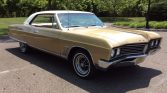This 1967 Buick Skylark is finished in gold with a white roof over ivory and is powered by a 340ci V8 paired with a two-speed automatic transmission. The current owner acquired the car in 2002, and features include power steering, power brakes, a push-button AM radio, an adjustable mirror, lap belts, parking lamps, full-size spare tire, chrome bumpers, and trim.
