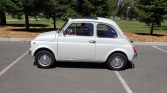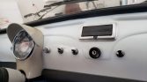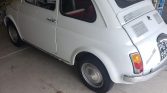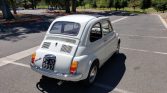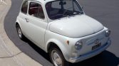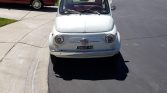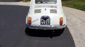 The car was reportedly disassembled, repainted white, and reassembled in Italy during the refurbishment, with replacement parts including the rear window, window seals, the front and rear bumpers, the cloth top, and the exterior lighting. Features include Italian license plates and “Nuova 500” badging.