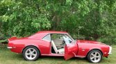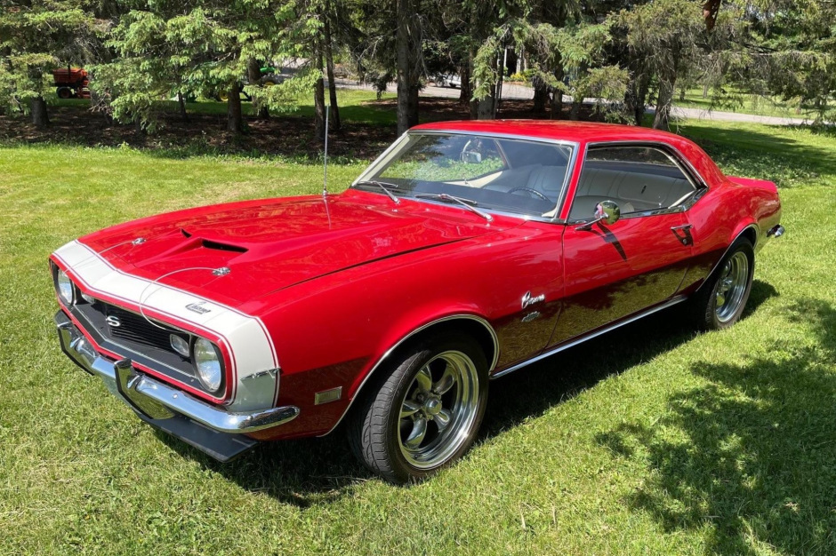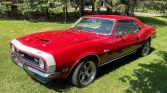 This 1968 Chevrolet Camaro has been refurbished in the style of a Yenko Camaro SS and is finished in red over white vinyl. Power is provided by a 427ci V8 paired with a Muncie four-speed manual transmission, and additional equipment includes five-spoke alloy wheels, a 1985 Z28 power steering system, an SS style front and rear suspension, and Yenko badging. The car was acquired by the seller in 2009, and subsequent work has consisted of installing replacement carpet, headliner, seat covers, and door panels.