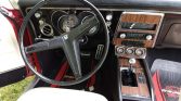 The body was repainted in red as part of a 2009 refurbishment and features a Yenko-style twin-scoop hood with hood pins, a white cowl stripe, Yenko badges, and an SS fuel filler cap. Chrome trim adorns the bumpers, window surrounds, light surrounds, and side mirrors.