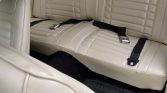 The cabin was reportedly reupholstered in 2016 and replacement white seat covers along with matching door panels, headliner, and black carpets were installed. Equipment includes manually-operated windows, lap belts, woodgrain appliqués, and Chevrolet-branded rubber floor mats.