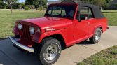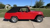 This 1968 Jeepster Commando convertible was acquired by the seller in the beginning of 2021 and has been refinished in red over red. Power comes from a 225ci V6 paired with a three-speed automatic transmission and a dual-range transfer case, and equipment includes a replacement black soft top, a tan boot cover, aftermarket wheels, locking front hubs, power-assisted drum brakes, power steering, a Grant steering wheel, and a hidden Pioneer stereo. Service since 2018 is said to…