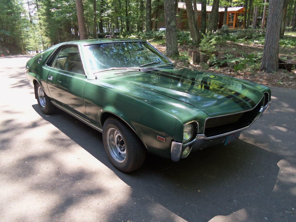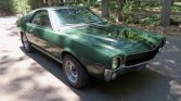 This 1969 AMC AMX 390 is finished in green over tan vinyl and is powered by a 390ci V8 paired with a Tremec TKO five-speed manual transmission. Additional equipment includes power steering, an Edelbrock four-barrel carburetor, Flowmaster mufflers, and a Hurst shifter. The seller states that the engine was out of the car when it was acquired from long-term storage in 2016 and that subsequent service included reinstalling the engine, reupholstering the interior, and overhauling the braking…