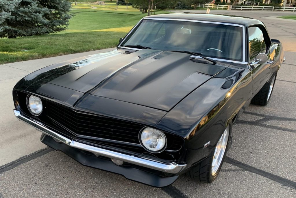 This 1969 Chevrolet Camaro began life as a six-cylinder coupe produced in Norwood, Ohio, and it was acquired by the seller in April 2019. The car was subsequently refurbished and modified, which included refinishing the exterior in black, retrimming the interior with TMI components, fitting Ridetech coilover suspension, disk brakes, and Fikse wheels, and installation of a supercharged 6.2-liter LSA V8, a 6L90E six-speed automatic transmission, and a narrowed Ford 9″ rear end with a Positraction differential. Other modifications include tubbed rear wheel wells, Dakota Digital instrumentation, Vintage Air climate control, a Lokar shifter, and more as described below.
