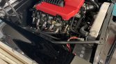 The supercharged 6.2-liter LSA V8 was sourced from a 2012 Camaro ZL1 and features tuning performed by Colorado Performance Unlimited of Brighton, Colorado. It is fitted with an aluminum radiator, black billet accessories, and exhaust headers linked to dual Borla mufflers. Power is routed to the rear wheels via a 6L90E six-speed automatic transmission and a narrowed Moser Ford 9″ rear fitted with a Positraction limited-slip differential and 3.55:1 gears.
