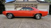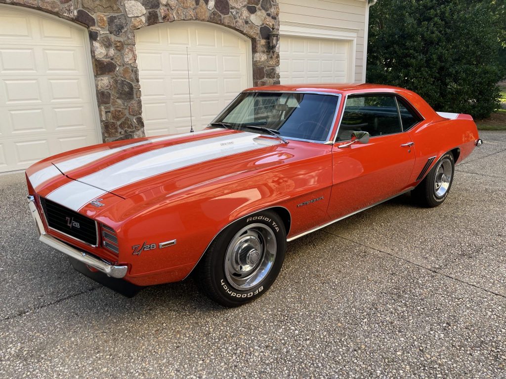 This 1969 Chevrolet Camaro Z/28 is finished in Hugger Orange with white stripes over a black and houndstooth interior and power comes from a 302ci V8 paired with a four-speed manual transmission. Equipment includes 15″ Rally wheels, power-assisted front disc brakes, a dual exhaust system, front and rear spoilers, power steering, a deluxe interior with a console, the auxiliary instrumentation option, a Hurst shifter, and a push-button AM/FM radio. The car is said to have been refurbished under previous ownership before it was acquired by the seller in 2011.
