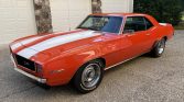 This 1969 Chevrolet Camaro Z/28 is finished in Hugger Orange with white stripes over a black and houndstooth interior and power comes from a 302ci V8 paired with a four-speed manual transmission. Equipment includes 15″ Rally wheels, power-assisted front disc brakes, a dual exhaust system, front and rear spoilers, power steering, a deluxe interior with a console, the auxiliary instrumentation option, a Hurst shifter, and a push-button AM/FM radio. The car is said to have been refurbished…