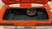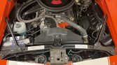 The body was originally finished in Cortez Silver and is said to have been repainted Hugger Orange during the refurbishment. Details include white stripes, front and rear spoilers, Z/28 badging, dual exhaust outlets, and bright-finished trim.