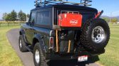 Power is sent to the rear or all four wheels through a replacement New Process 435 four-speed manual transmission and a Dana 20 dual-range transfer case that was reportedly rebuilt with a 6:1 ratio. The Dana 44 front axle is said to feature 4.10 gearing and a power locking differential, while the Ford 9″ rear end has reportedly been fitted with an Eaton Detroit “Soft Locker” locking differential and 31-spline alloy axles. Polyurethane axle bumper stops are also said to have been installed.