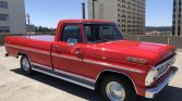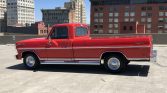This 1969 Ford F-100 Ranger is a Styleside pickup that is finished in red over black vinyl and powered by a replacement 428ci V8 paired with a three-speed automatic transmission. Additional equipment includes a Dana 61 rear axle with Positraction, power steering, power front disc brakes, rear air helper springs, an auxiliary fuel tank, electronic ignition, air conditioning, tinted windows, and a dual exhaust system. The truck was delivered new to Damerow Ford in Beaverton, Oregon, and later spent time…