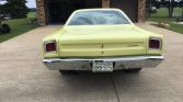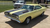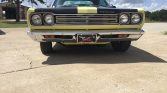 The car was reportedly repainted in its current shade of yellow as part of the 2017 refurbishment and features a dual-exit exhaust with polished finishers, a vented hood, black hood stripes, “Road Runner” badging, and vent windows. Chrome trim adorns the front and rear bumpers, side mirrors, grille, and window surrounds. The seller notes the emergency lights do not function, and the trunk lock and key have been replaced.