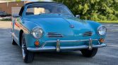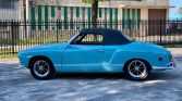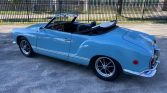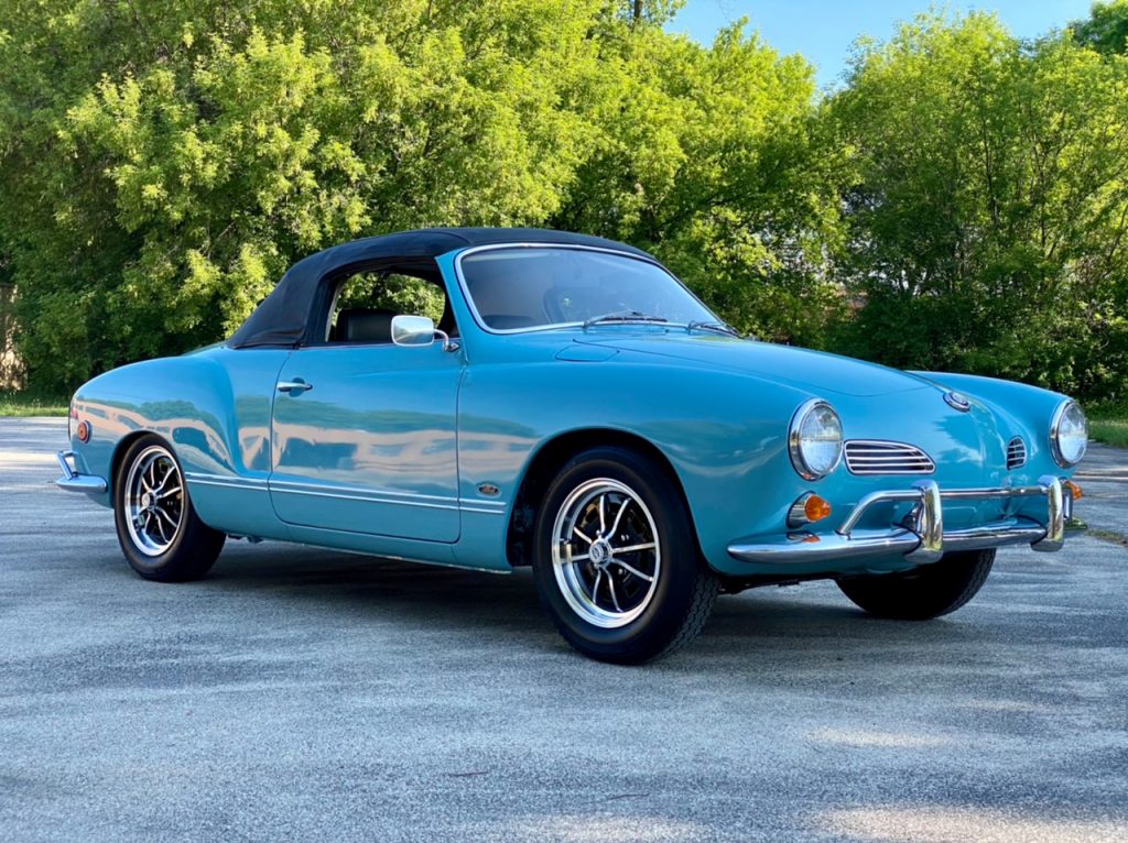 This 1969 Volkswagen Karmann Ghia convertible was first sold in South Dakota and was moved to Wisconsin in 1995. The car is finished in light blue over black leatherette upholstery, and power comes from a 1.5L air-cooled flat-four paired with a four-speed manual transaxle. Features include a black soft top, 15″ EMPI Sprint Star wheels, and chrome pedal covers. Service performed under current ownership included an overhaul of the brake system, a carburetor rebuild, and the installation…