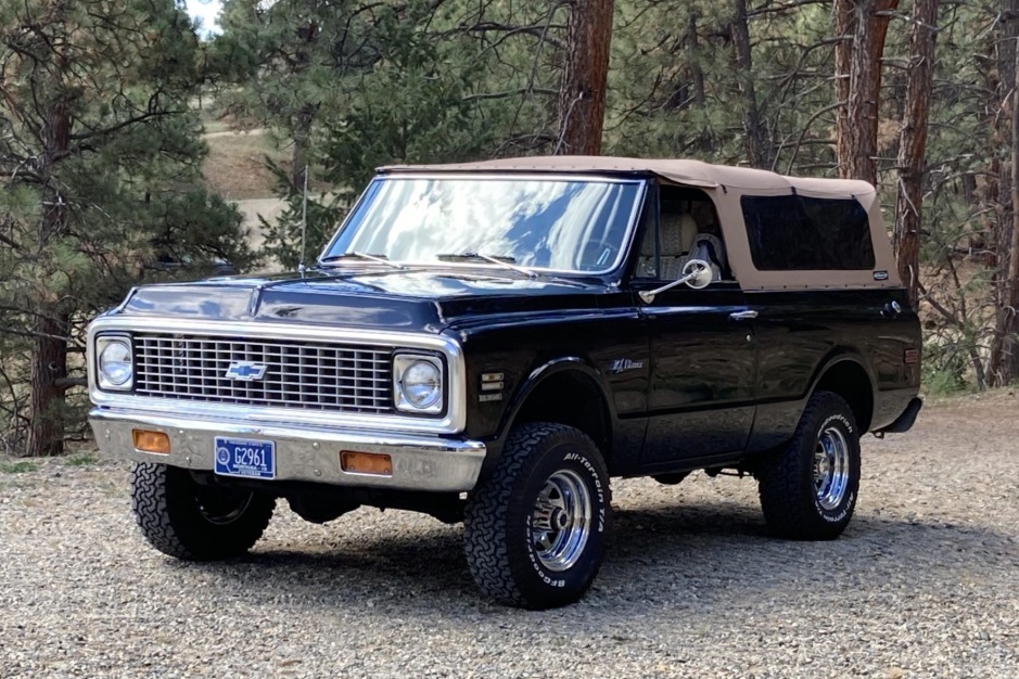 This 1970 Chevrolet K5 Blazer was acquired by the seller in 2014, and it was subsequently modified with a 5.7-liter Vortec V8, a four-speed automatic transmission, and a dual-range transfer case. The truck is finished in black over tan upholstery and equipped with a tan soft top, power steering, manually-locking front hubs, front disc brakes, 15″ chrome-finished wheels, a CB radio, and a Pioneer CD stereo. Additional work under current ownership is said to have included replacement…