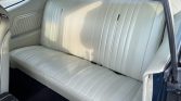 The seller states that the body was refinished in the factory Fathom Blue (28) in 1995. Features include an Ivory vinyl roof, chrome bumpers, SS badges, and white racing stripes.