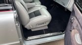 Staggered-width 20” American Racing Torq Thrust wheels feature gray centers with polished lips. Stopping power is provided by front discs with rear drums, and the truck rides on an aftermarket air suspension.