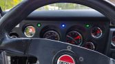 A three-spoke MOMO steering wheel frames Speedhut instrumentation, which includes a 140-mph speedometer and a tachometer with a 7,750-rpm redline. The digital odometer indicates approximately 180 miles, though true mileage is unknown.