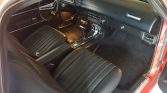 Five-hole 14″ alloy wheels are wrapped in 235/60 front and 245/60 rear BFGoodrich Radial TA tires. A Borgeson power steering conversion and a Saginaw pump are fitted, and braking is is from power-assisted front discs and rear drums.
