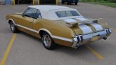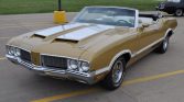 This 1970 Oldsmobile Cutlass Supreme convertible is finished in gold over white vinyl and is powered by a 455ci V8 paired with a three-speed automatic transmission. Equipment includes dual hood scoops, power brakes, power steering, a white soft top, a rear spoiler, and air conditioning. The seller acquired the car in 2021, and service in preparation for the sale is said to have included replacing the power steering pump, convertible top motor, transmission pan gasket, transmission governor,…