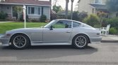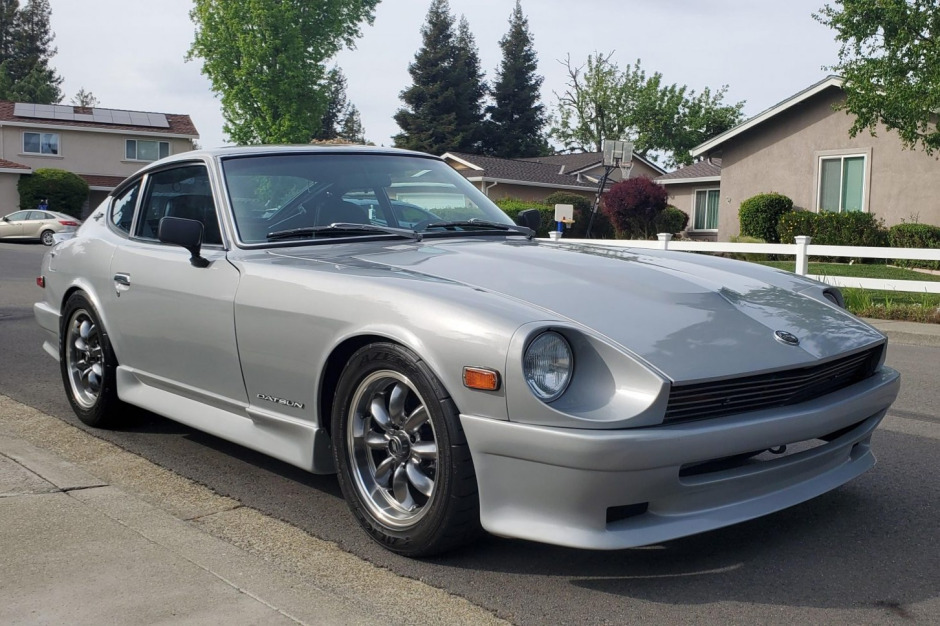 This 1971 Datsun 240Z is a Series I example that was built in August 1970 and acquired as a rolling project approximately five years ago by the seller and has since been refurbished and modified with a 6.0-liter GM LS2 V8, a Borg Warner T-56 six-speed manual transmission, and an R200 rear differential. The car is finished in silver and has been fitted with a Datsun Garage Type 2 body kit, and additional features include reupholstered black vinyl seats, a Kenwood CD stereo with Bluetooth connectivity, a Hoke Performance front crossmember and driveshaft, Vintage Air A/C system, BC Racing adjustable coilovers, front and rear sway bars, aftermarket 16″ wheels, and power-assisted steering and four-wheel disc brakes.