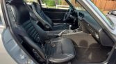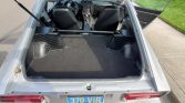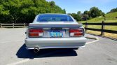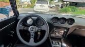 Rust repair was carried out in the hatch and floors prior to a repaint in the factory shade of Silver Metallic (901) during the refurbishment. A Datsun Garage Type 2 fiberglass rear spoiler, front and rear bumpers, and side skirts have been added, along with LED taillights, H4 headlights, a Flowmaster exhaust tip, and a replacement windshield. A blue California license plate is mounted out back.