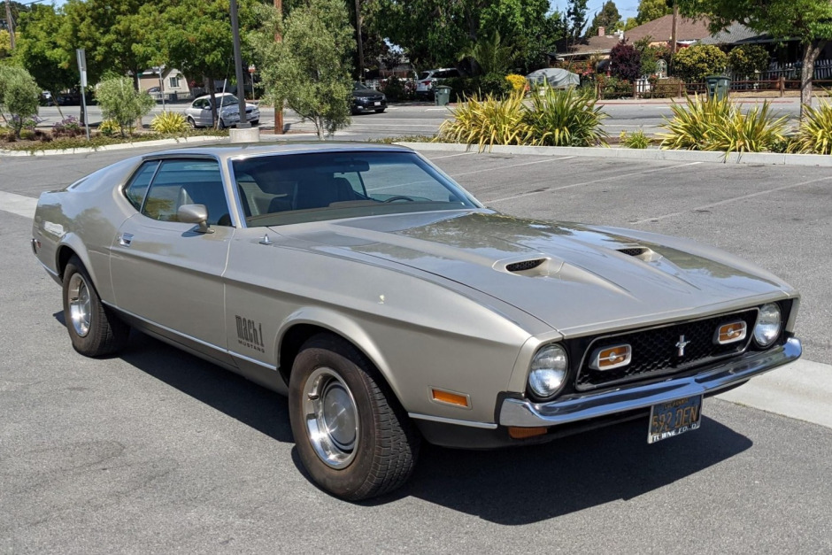 This 1971 Ford Mustang Mach 1 is said to have been sold new from Towne Ford of Redwood City, California and acquired by the seller’s late father in March 1990. The car is finished in Light Pewter Metallic over tan vinyl and power comes from a 351ci Cleveland V8 paired with a three-speed automatic transmission. Additional equipment includes 14″ steel wheels with hubcaps, power-assisted steering and front disc brakes, a full-length center console, Sport Deck fold-down rear seats, and an Alpine stereo. This Mach 1 fastback is now offered at no reserve with a Towne Ford license plate frame, manufacturer’s literature, blue California license plates, a repair manual, a car cover, partial service records, and a clean California title in the seller’s name.