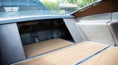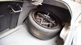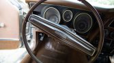 The two-spoke steering wheel exhibits cracking and fronts instrumentation that includes a 120-mph speedometer, a fuel gauge, and an analog clock, while additional auxiliary gauges are housed in the center stack. The five-digit odometer has rolled over at least once and currently indicates 3k miles, though total mileage is unknown. Around 52k miles were added by the seller and his father over the last 31 years.