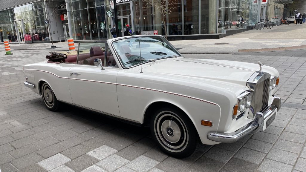 This 1971 Rolls-Royce Corniche Convertible is finished in Magnolia over burgundy leather and powered by a 6.75-liter V8 paired with a three-speed automatic transmission. Equipment includes a burgundy soft top, power aLessories, 15″ wheels, four-wheel disc brakes, chrome bumpers, and a factory cassette stereo. The car was acquired by the owner 15 years ago and now shows 83k miles, and recent service included a tune up. This Corniche is now offered in Canada by the seller on behalf of its current owner with partial service records and Quebec registration.