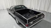 This 1972 Chevrolet El Camino is powered by a replacement 396ci V8 linked with a four-speed manual transmission, and it is finished in black with white rally stripes and a black vinyl roof cover. Equipment includes a cowl-induction hood, 15″ five-spoke wheels, Mickey Thompson tires, front disc brakes, and power steering, while the engine is fitted with an Edelbrock intake manifold, a Holley four-barrel carburetor, aluminum cylinder heads, long-tube headers, Flowmaster mufflers, and MSD ignition components. The cabin is trimmed in black vinyl and outfitted with air conditioning, a tilt steering wheel, a cassette stereo, and power windows.