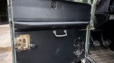 Limestone-painted 16″ steel wheels are wrapped in 225/75 Cooper Discovery SST tires with white lettering. Two matching spares are fitted, one to the hood and one to rear door. The four-wheel drum brake system was reportedly serviced with a replacement master cylinder, wheel cylinders, and brake lines under prior ownership. The front and rear axles are also said to have been serviced and replacement front locking hubs were installed.