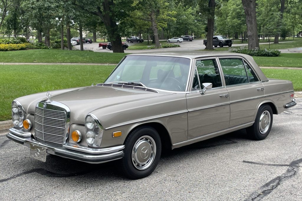 This 1972 Mercedes-Benz 280SEL 4.5 is finished in bronze over a brown leather interior and is powered by a 4.5-liter M117 V8 mated to a three-speed automatic transmission. Additional equipment includes a Becker AM/FM radio, wood trim, power windows, and 14″ steel wheels with body-color covers. The car was acquired by the seller in 2019, and subsequent work consisted of replacing the radiator, fuel pump, battery, and performing an oil change.