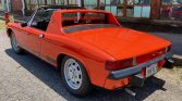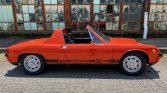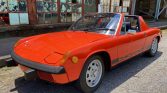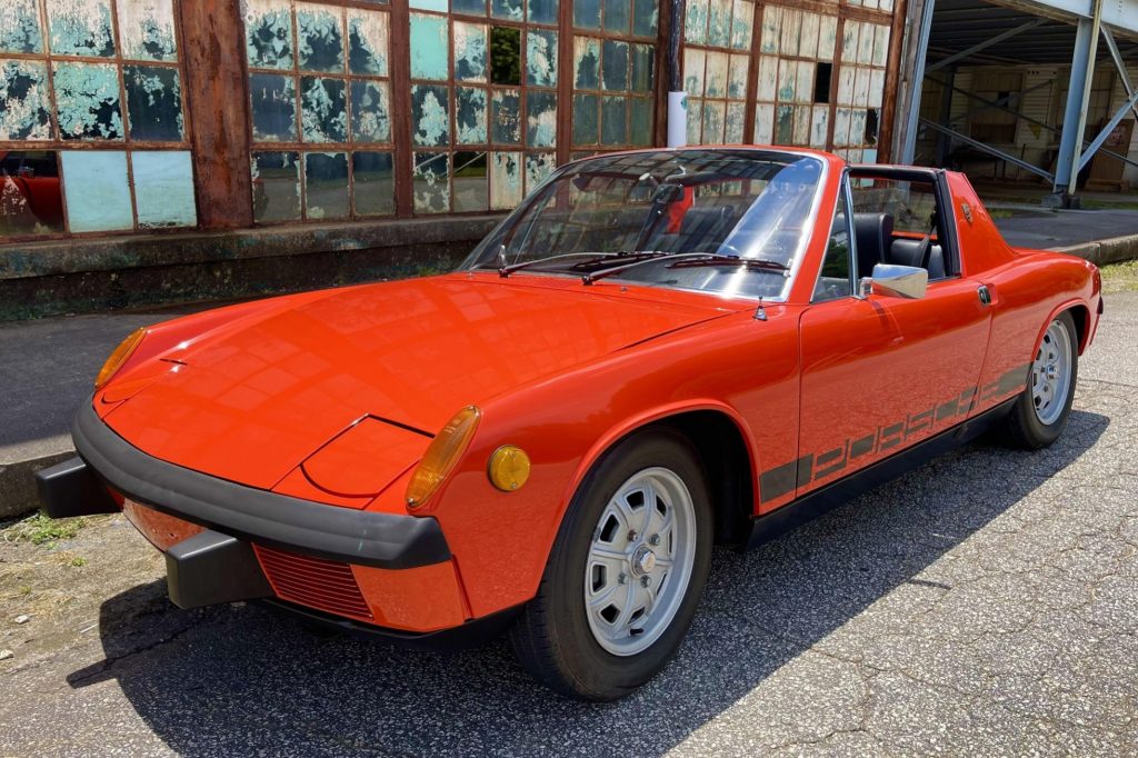 This 1972 Porsche 914 is finished in orange over black vinyl and is powered by a mid-mounted 1.7-liter flat-four paired with a five-speed manual transaxle. Equipment includes a removable black roof panel, a push-button AM/FM radio, 15” Pedrini wheels, pop-up headlights, and black side stripes with Porsche branding. The clutch was replaced in 2017, along with the spark plugs and rear main seal.