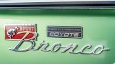 Power is sent to the rear or all four wheels through a 10R80 ten-speed automatic transmission, a Dana 20 twin-stick transfer case, and slide-yolk heavy-duty driveshafts. The Dana 44 front axle and 9″ rear axle feature locking differentials and heavy-duty axles. A transmission cooler, a dual exhaust system, and a 23-gallon Toms Bronco Parts fuel tank with an electronic fuel pump assembly have been retrofitted.