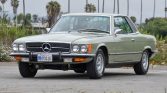 This 1973 Mercedes-Benz 450SLC was reportedly sold new in San Diego, California, and spent time in Oregon prior to its acquisition by the current owner in 2018. The car is finished in Silver Green Metallic over Pine Green leather and powered by a 4.5-liter V8 paired with a three-speed automatic transmission. Equipment includes fog lamps, 14″ alloy wheels, air conditioning, power windows, central locking, and a Becker Grand Prix radio. A 2015 refurbishment included interior work, brake system service, repairs to the audio system, and replacement of the valve-cover gaskets, timing chain, fuel injectors, cooling system components, and the steering linkage.