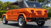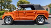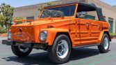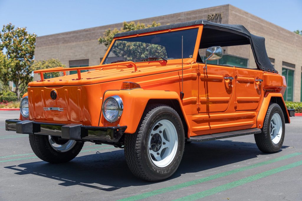 This 1973 Volkswagen Thing was acquired by the seller over a decade ago and reportedly spent a number of years in storage prior to a cosmetic and mechanical refurbishment. Power comes from a 1.6-liter flat-four paired with a four-speed manual transaxle, and the car is finished in orange with a black soft top over black vinyl upholstery. Additional equipment includes a Pioneer CD stereo, a 12-volt electrical system, slatted wood floorboards, and white-painted 15” wheels.