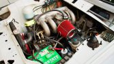 The car’s body was factory finished in Chamonix White (85) and was repainted in its current silver under previous ownership. Exterior features include an Ireland Engineering Turbo-style front air dam, European-market turn signals, as well as a fiberglass hood, trunk lid, and rear spoiler.