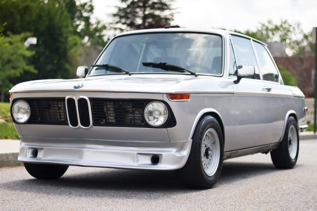 This 1974 BMW 2002 is powered by a fuel-injected 2.0-liter inline-four paired with a four-speed manual transmission and is finished in silver over gray and blue upholstery. Acquired by the seller in 2001, the car has been modified with an engine from a 1973 2002tii, an Ireland Engineering Turbo-style front air dam, European-market turn signals, a Raid Turbo steering wheel, front Recaro sport seats, and a Kenwood CD stereo as well as a fiberglass hood, trunk lid, and rear spoiler.