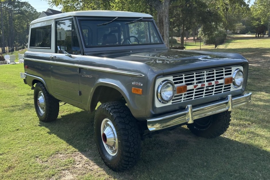 This 1974 Ford Bronco underwent a refurbishment in 2022, and it is powered by a 302ci V8 linked with a three-speed automatic transmission and a dual-range transfer case. The truck is finished in gray with a white hardtop, and a body lift was installed during the build. Bedliner material was applied to the cabin floors, and a replacement rear bench and front bucket seats were installed along with a center console, a Vintage Air climate control unit, and…