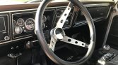 The three-spoke steering wheel fronts replacement Sport-Comp II instrumentation featuring a 160-mph speedometer, a pyrometer, a boost gauge, and auxiliary gauges including indicator lights for oil pressure, water temperature, and fuel pressure. The odometer shows 23k miles.