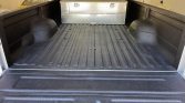The truck has been repainted in arctic silver under current ownership and features a chrome front bumper and a black rear bumper with a hitch receiver and shackles. Additional equipment includes a spray-on bed liner, a diamond plate combo toolbox with a 40 gallon fuel tank, a lockable bed side storage compartment, side steps, a light bar, and door-mounted towing mirrors.