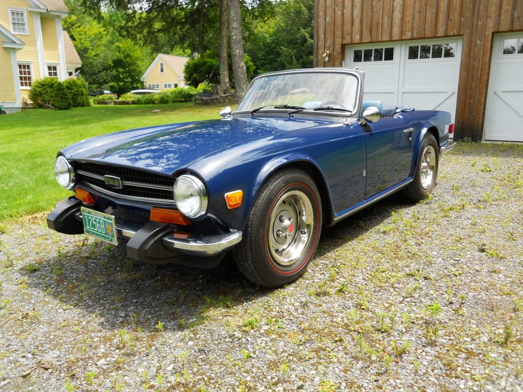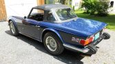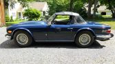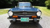 This 1974 Triumph TR6 is said to have been sold new in Connecticut and was acquired by the seller in April 1998. The car was subsequently refinished in blue over light blue upholstery, and its 2.5-liter inline-six is paired with a four-speed manual transmission. Features include a black soft top, a blue boot cover, bright bumpers with guards, an AM/FM radio, 15″ wheels, and dual Stromberg carburetors. Service in 2020 reportedly involved a coolant flush, an oil change, and replacement of the fuel filter.