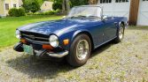 This 1974 Triumph TR6 is said to have been sold new in Connecticut and was acquired by the seller in April 1998. The car was subsequently refinished in blue over light blue upholstery, and its 2.5-liter inline-six is paired with a four-speed manual transmission. Features include a black soft top, a blue boot cover, bright bumpers with guards, an AM/FM radio, 15″ wheels, and dual Stromberg carburetors. Service in 2020 reportedly involved a coolant flush, an oil…
