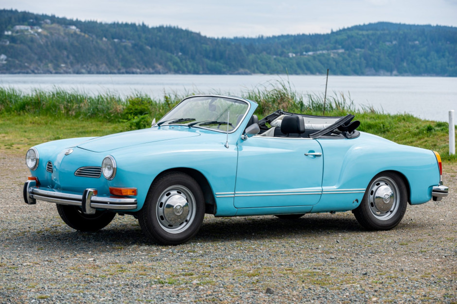 This 1974 Volkswagen Karmann Ghia convertible is a final-year example that was sold new by Solano Volkswagen of Vacaville, California, and purchased by the seller in 2010, reportedly from the second owner. The car is finished in Olympic Blue over a black interior and is powered by a 1.6-liter flat-four paired with a four-speed manual transaxle. Equipment includes a black soft top, high-back bucket seats, chrome bumpers, a VDO tachometer, and a Sapphire AM/FM radio. Work completed in February 2021 included installing a replacement distributor, fuel filter, intake tubes and gaskets, and gearshift rod coupling and bushing in addition to adjusting the valves, rebuilding the carburetor, and performing an oil change.