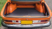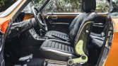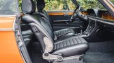 The Karmann-built body was finished from the factory in red and was repainted in its current orange during refurbishment. Exterior features include quad headlights, chrome bumpers and trim, and a pillarless roofline.