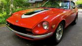 This 1975 Datsun 280Z is finished in orange with a white roof over a white interior and is powered by a 2.8-liter inline-six fitted with triple Weber carburetors and mated with a five-speed manual transmission. Additional modifications include a roll cage, electronic ignition, an oil cooler, an aluminum radiator with dual electric fans, Ground Control coilover suspension, a big brake kit, and 16” Panasport wheels. It was acquired by the seller two years ago and maintenance performed in the past six months is said to include replacement of the ignition coil.