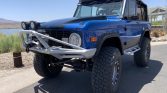 Aftermarket 17″ beadlock wheels are mounted with 37×12.5″ BFGoodrich Mud Terrain T/A KM2 tires. The power-assisted braking system features a Wilwood master cylinder and drilled and slotted rotors at all four corners, and the front axle is equipped with manually-lockable hubs. A 6″ James Duff lift kit and Bilstein shocks have been added.