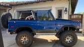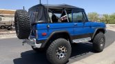 This 1975 Ford Bronco is supplied by a 302ci V8 crate engine equipped with FiTech fuel injection, an Edelbrock intake manifold, aluminum cylinder heads, roller rockers, and an aftermarket exhaust system. Shifting is through a three-speed automatic transmission fitted with a custom billet torque converter, and additional equipment includes a twin-stick two-speed transfer case, High Lifter driveshafts, ARB front and rear locking differentials, a James Duff lift kit, Bilstein shocks, aftermarket 17″ beadlock wheels with 37″ tires,…