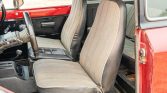 The front bucket seats and rear bench are trimmed in gray cloth with black vinyl sides and backs. Amenities include an analog clock and lap belts.