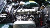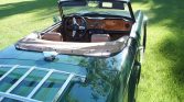 The exterior was repainted in its current shade of green in 1991, and features a black convertible top as well as chrome bumpers, a trunk-mounted luggage rack, a Talbot-style left mirror, Union Jack decals, and dual exhaust outlets.