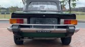 The exterior was finished from the factory in British Racing Green (75) and was repainted following rust repair approximately two decades ago. The driver’s door was repaired and refinished in 2015 and a scratch in the passenger-side front fender was also repaired at that time. Features include a front spoiler, bullet-style mirrors, chrome bumpers with black rubber guards and a rear overrider bar, Union Jack decals on the rear quarter panels, and a black soft top that was replaced in 2015.