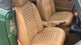 The bucket seats were finished from the factory in Beige (74) and were reupholstered using an interior kit from the Roadster Factory with replacement foam along with matching door panels and carpets in 2015. Equipment includes a wood-veneer dashboard with a locking glovebox, a wood shift knob, carpeted parcel shelf, dash-mounted map light, and a Clarion AM/FM cassette stereo. The heater valve was replaced in 2014.